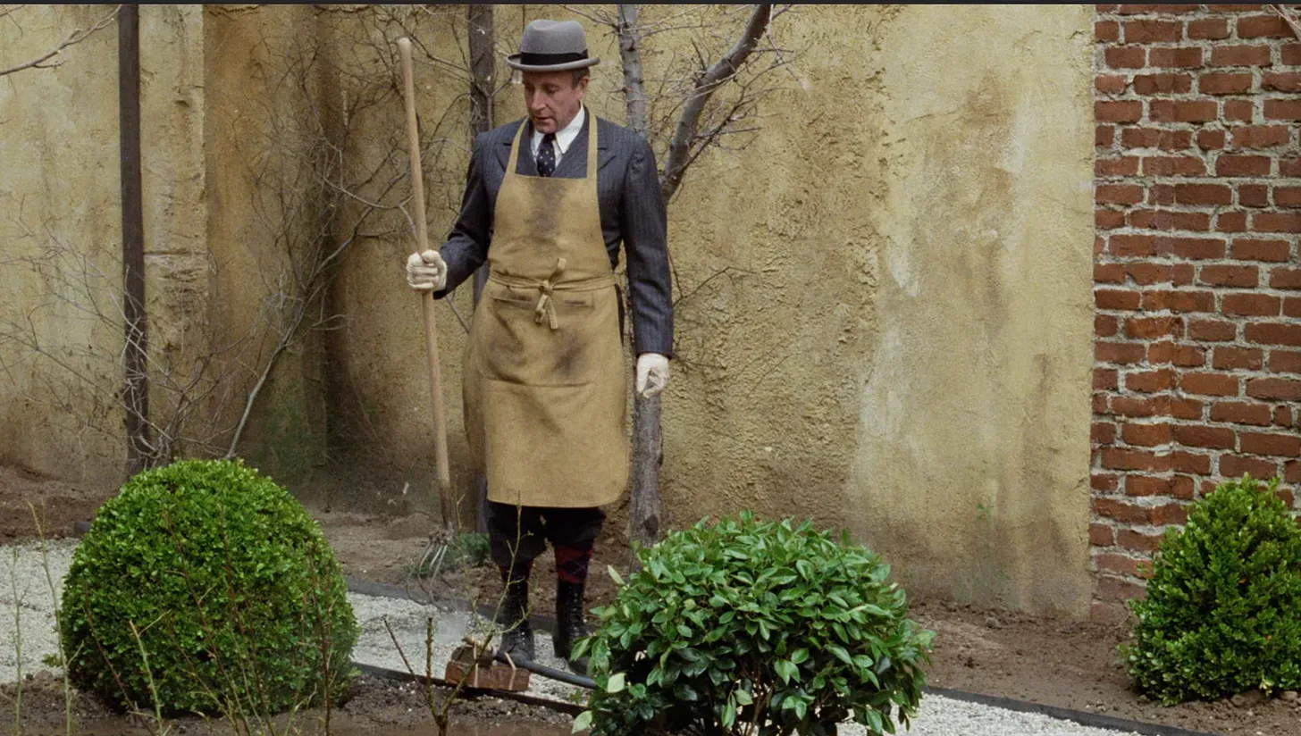 Right from the start, Being There sets up its visual style. The central character is Chance, played by Peter Sellers, who is the lifelong gardener and caretaker of the house. His world is defined entirely by its routines, rooms, and the television within it.